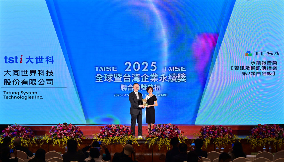 大同世界科技股份有限公司(TSTI,大世科 8099)於 2025 第十八屆 TCSA 台灣企業永續獎 中,再度榮獲資訊服務業最高榮譽 《永續報告獎-白金獎》。此獎項象徵大世科在永續治理、環境行動與社會投入三大領域的深度成果,也代表公司自首次參賽後,即連續兩年獲得白金級肯定。