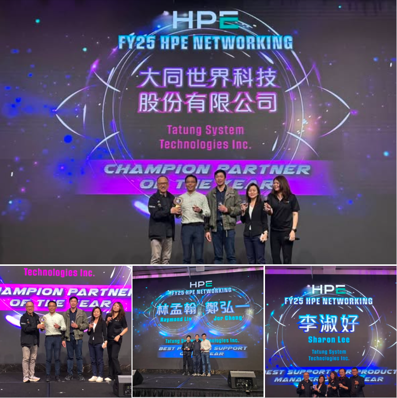 大世科榮獲 「Champion Partner of the Year」,肯定公司在整體市場拓展、專案推動與解決方案整合方面的優異表現。此外,團隊成員亦分別獲得個人獎項殊榮,包括 林孟翰(Raymond Lin)與鄭弘一(Jor Cheng)榮獲 「Best Pre-Sales Support of the Year」,表彰其在網路架構規劃、技術售前支援與專案推動上的專業能力;李淑好(Sharon Lee)則榮獲 「Best Support / Product Manager of the Year」,展現在產品管理與客戶支援方面的卓越表現。